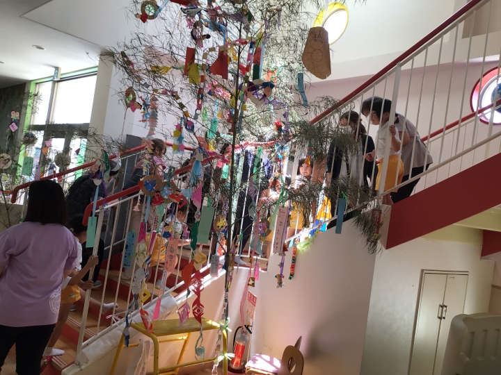 たなばたまつりに、おじいちゃんおばあちゃんを、およびしました。